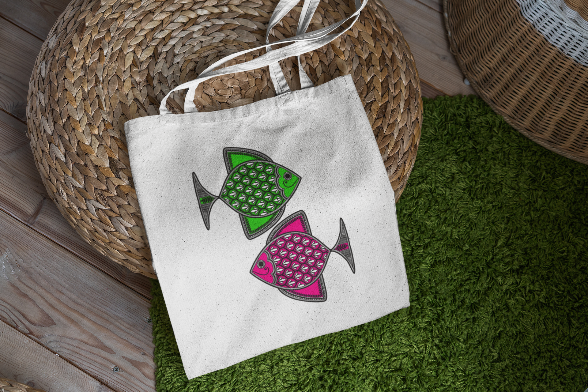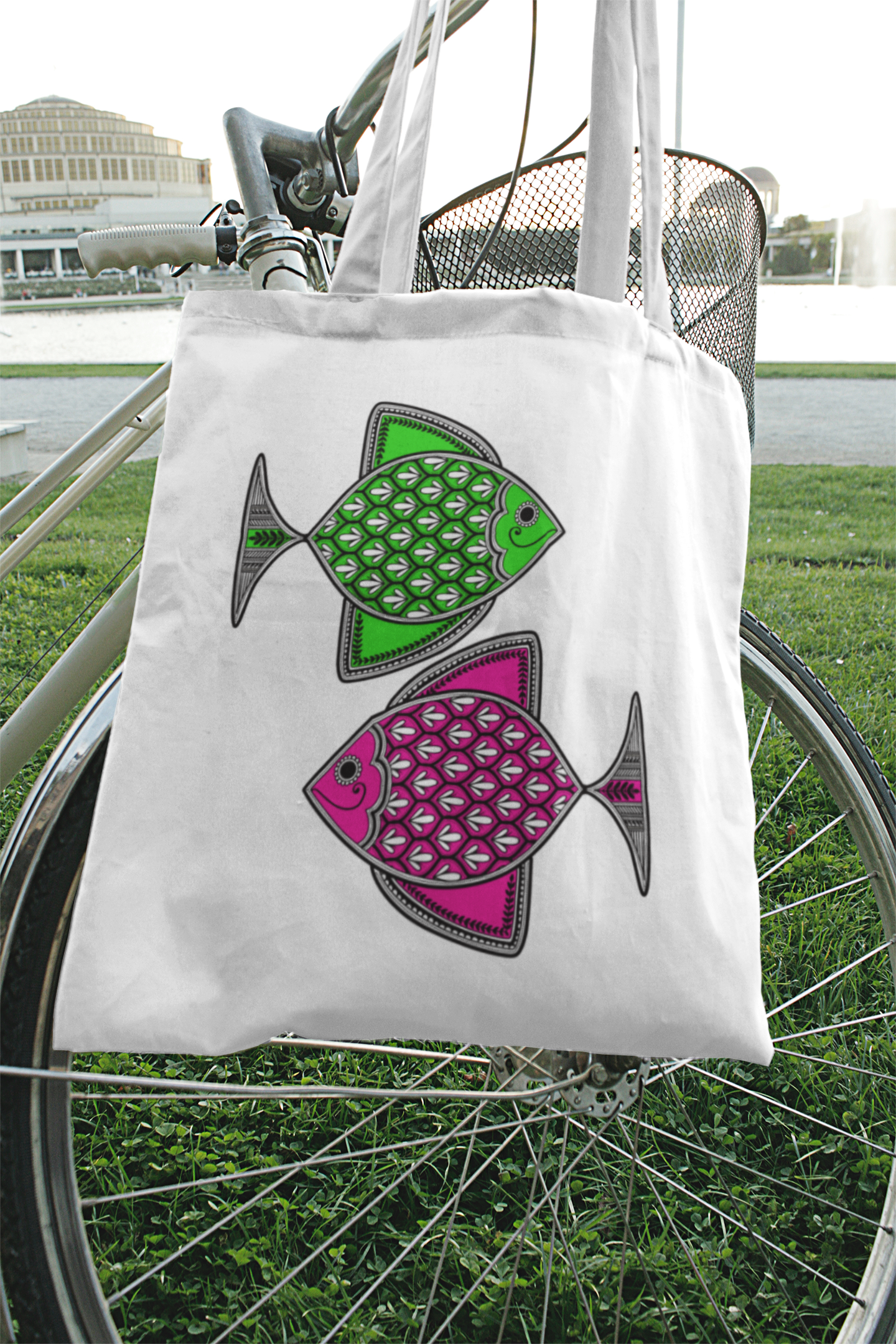 Madhubani Machali Neon Tote Bag
